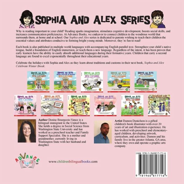 "Sophia and Alex Clean the House" is one of eleven volumes in the "Sophia and Alex" series, written by author Denise Bourgeois-Vance and illustrated by artist Damon Danielson. The storyline follows Sophia and Alex as they work with other family members to perform chores around the house. The children learn that cleaning can be fun and rewarding when the family works together. After chores are done, the family rewards themselves by attending a baseball game and cheering for Sophia and Alex's older brother, Noah. The 32-page illustrated book shows family members taking responsibility for the home in which they live. Children take pride in completing a task. They gain a feeling of success seeing a job well done. Each book in the "Sophia and Alex" series draws on storylines based on common events found in the life of an early learner. Children relate to the multi-cultural characters and learn the art of acceptance and inclusion in school and home settings. Through the use of dual text, a child can simultaneously learn to read in Spanish or English while better expressing themselves in each. Studies prove that bilingual children are more apt to excel in writing and reading in subsequent grades when given the tools at an early age. At the time of this printing, over 20 languages have been offered through Children Bilingual Books. Parents and grandparents alike cherish the opportunity to connect with their child through reading. Why is reading important to your child? Reading sparks imagination, stimulates cognitive development, boosts social skills, and increases communication proficiencies. At Children Bilingual Books, we endeavor to connect children of all ethnicities, races, cultures, and languages with the wondrous world that surrounds them. The Sophia and Alex series provides a pathway to a child's understanding of language and social interaction. Moreover, they're fun to read!