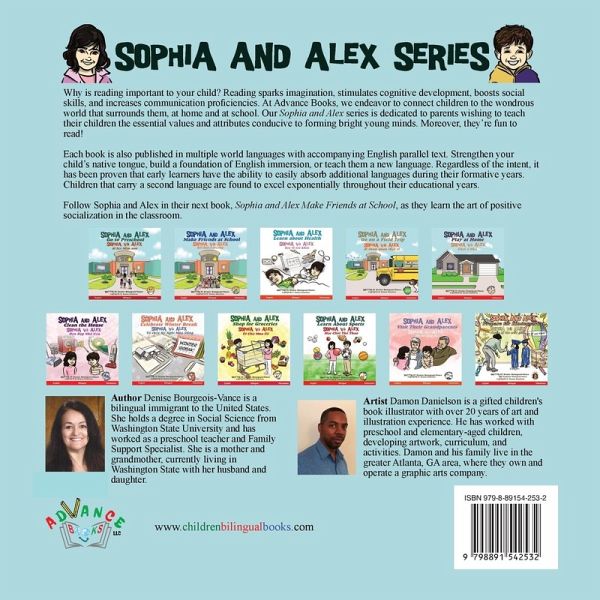 "Sophia and Alex Go to Preschool" is the first of eleven volumes in the "Sophia and Alex" series, written by Author Denise Bourgeois-Vance and illustrated by Artist Damon Danielson. The story takes our two main characters, fraternal twins Sophia and Alex, to their first day of preschool where they meet their new teacher, Miss Anna. The children learn about the classroom and the fun activities planned for the day with children of diverse backgrounds. The 32-page illustrated book addresses separation anxiety, meeting and interacting with peers and adults, displaying appropriate behavior, and adapting to new environments through positive reinforcement. Children learn the social and communitive skills needed to succeed in a controlled learning environment. Each book in the "Sophia and Alex" series draws on storylines based on common events found in the life of an early learner. Children relate to the multi-cultural characters and learn the art of acceptance and inclusion in school and home settings. Through the use of dual text, the child can simultaneously learn to read in Vietnamese or English while better expressing themselves in each. Studies prove that bilingual children are more apt to excel in writing and reading in subsequent grades when given the tools at an early age. At the time of this printing, over two dozen languages have been added to the series by the Children Bilingual Books' pool of translators. Parents and grandparents alike cherish the opportunity to connect with their child through reading in their native tongue. Why is reading important to your child? Reading sparks imagination, stimulates cognitive development, boosts social skills, and increases communication proficiencies. At Children Bilingual Books, we endeavor to connect children of all ethnicities, races, cultures, and languages with the wondrous world that surrounds them. The Sophia and Alex series provides a pathway to a child's understanding of language and social interaction. Moreover, they're fun to read!