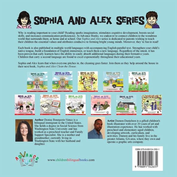 "Sophia and Alex Play at Home" is one of eleven volumes in the "Sophia and Alex" series, written by Author Denise Bourgeois-Vance and illustrated by Artist Damon Danielson. The storyline takes the reader to the home of our fraternal twins, Sophia and Alex. It opens with the children playing at home on a Saturday morning. Friends they met in school are invited over for a playdate. Each child learns the rules and preferred behavior as they interact with one another for a fun day at home. By the end of the day, Sophia and Alex are found enjoying family time with their parents and siblings. The 32-page illustrated book shows the children engaged in fun activities, sharing, interacting, pretending, and playing throughout the day. Children learn social and communitive skills while engaging in casual interaction with friends and family. Each book in the "Sophia and Alex" series draws on storylines based on common events found in the life of an early learner. Children relate to the multi-cultural characters and learn the art of acceptance and inclusion in school and home settings. Through the use of dual text, the child can simultaneously learn to read in Japanaese or English while better expressing themselves in each. Studies prove that bilingual children are more apt to excel in writing and reading in subsequent grades when given the tools at an early age. At the time of this printing, over two dozen languages have been added to the series by the Children Bilingual Books' pool of translators. Parents and grandparents alike cherish the opportunity to connect with their child through reading in their native tongue. Why is reading important to your child? Reading sparks imagination, stimulates cognitive development, boosts social skills, and increases communication proficiencies. At Children Bilingual Books, we endeavor to connect children of all ethnicities, races, cultures, and languages with the wondrous world that surrounds them. The Sophia and Alex series provides a pathway to a child's understanding of language and social interaction. Moreover, they're fun to read!
