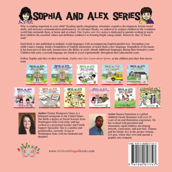 "Sophia and Alex Visit Their Grandparents" is one of eleven volumes in the "Sophia and Alex" series, written by author Denise Bourgeois-Vance and illustrated by artist Damon Danielson. Sophia and Alex's family embark on a journey to see their grandparents who live far away. The children learn that traveling may consist of many modes of transportation such as airplanes, trains, and cars. They also see the unique interaction between their parents and their parent's parents, along with other relationships within their extended family. The 32-page illustrated book shows the special relationship grandchildren have with their grandparents as compared to their own parents. They see the love that exists, and the comfort gained from bonding with those who love them. The children realize that although separation is difficult and sad as they say good-bye, they still know their grandparents care for them wherever they may be. Each book in the "Sophia and Alex" series draws on storylines based on common events found in the life of an early learner. Children relate to the multi-cultural characters and learn the art of acceptance and inclusion in school and home settings. Through the use of dual text, a child can simultaneously learn to read in Spanish or English while better expressing themselves in each. Studies prove that bilingual children are more apt to excel in writing and reading in subsequent grades when given the tools at an early age. At the time of this printing, over 20 languages have been offered through Children Bilingual Books. Parents and grandparents alike cherish the opportunity to connect with their child through reading. Why is reading important to your child? Reading sparks imagination, stimulates cognitive development, boosts social skills, and increases communication proficiencies. At Children Bilingual Books, we endeavor to connect children of all ethnicities, races, cultures, and languages with the wondrous world that surrounds them. The Sophia and Alex series provides a pathway to a child's understanding of language and social interaction. Moreover, they're fun to read!