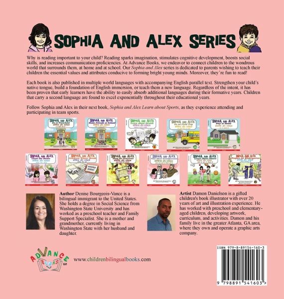 "Sophia and Alex Visit Their Grandparents" is one of eleven volumes in the "Sophia and Alex" series, written by Author Denise Bourgeois-Vance and illustrated by Artist Damon Danielson. Sophia and Alex's family embark on a journey to see their grandparents far away. The children learn that traveling may consist of many modes of transportation such as airplanes, trains, and cars. They also see unique interactions between their parents and their parent's parents, along with relationships within their extended family. The 32-page illustrated book shows the special relationship grandchildren have with their grandparents when compared to their own parents. They see the love that exists and the comfort gained from bonding with those who love them. The children realize that although separation can be difficult and sad, they still know their grandparents care for them wherever they may be. Each book in the "Sophia and Alex" series draws on storylines based on common events found in the life of an early learner. Children relate to the multi-cultural characters and learn the art of acceptance and inclusion in school and home settings. Through the use of dual text, the child can simultaneously learn to read in Hindi or English while better expressing themselves in each. Studies prove that bilingual children are more apt to excel in writing and reading in subsequent grades when given the tools at an early age. At the time of this printing, over two dozen languages have been added to the series by the Children Bilingual Books' pool of translators. Parents and grandparents alike cherish the opportunity to connect with their child through reading in their native tongue. Why is reading important to your child? Reading sparks imagination, stimulates cognitive development, boosts social skills, and increases communication proficiencies. At Children Bilingual Books, we endeavor to connect children of all ethnicities, races, cultures, and languages with the wondrous world that surrounds them. The Sophia and Alex series provides a pathway to a child's understanding of language and social interaction. Moreover, they're fun to read!