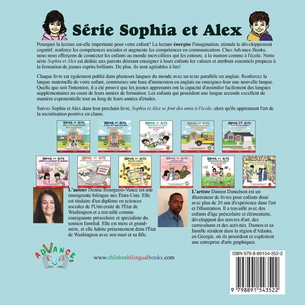 "Sophia and Alex Go to Preschool" is the first of eleven volumes in the "Sophia and Alex" series, written by Author Denise Bourgeois-Vance and illustrated by Artist Damon Danielson. The story takes our two main characters, fraternal twins Sophia and Alex, to their first day of preschool where they meet their new teacher, Miss Anna. The children learn about the classroom and the fun activities planned for the day with children of diverse backgrounds. The 32-page illustrated book addresses separation anxiety, meeting and interacting with peers and adults, displaying appropriate behavior, and adapting to new environments through positive reinforcement. Children learn the social and communitive skills needed to succeed in a controlled learning environment. Each book in the "Sophia and Alex" series draws on storylines based on common events found in the life of an early learner. Children relate to the multi-cultural characters and learn the art of acceptance and inclusion in school and home settings. Through the use of dual text, the child can simultaneously learn to read in Chinese or French while better expressing themselves in each. Studies prove that bilingual children are more apt to excel in writing and reading in subsequent grades when given the tools at an early age. At the time of this printing, over two dozen languages have been added to the series by the Children Bilingual Books' pool of translators. Parents and grandparents alike cherish the opportunity to connect with their child through reading in their native tongue. Why is reading important to your child? Reading sparks imagination, stimulates cognitive development, boosts social skills, and increases communication proficiencies. At Children Bilingual Books, we endeavor to connect children of all ethnicities, races, cultures, and languages with the wondrous world that surrounds them. The Sophia and Alex series provides a pathway to a child's understanding of language and social interaction. Moreover, they're fun to read!