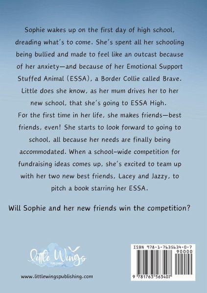 Sophie wakes up on the first day of high school, dreading what's to come. She's spent all her schooling being bullied and made to feel like an outcast because of her anxiety-and because of her Emotional Support Stuffed Animal (ESSA), a Border Collie called Brave. Little does she know, as her mum drives her to her new school, that she's going to ESSA High. For the first time in her life, she makes friends-best friends, even! She starts to look forward to going to school, all because her needs are finally being accommodated. When a school-wide competition for fundraising ideas comes up, she's excited to team up with her two new best friends, Lacey and Jazzy, to pitch a book starring her ESSA. Will Sophie and her new friends win the competition? "It's hard when your brain works differently. I'm autistic and have ADHD and anxiety. Sometimes, I find it hard to use my words verbally and understand what others are saying to me. When I get overwhelmed and anxious, I can have panic attacks. My heart starts racing, my stomach hurts, and I start to feel sick. My body goes weak, and I feel like I am going to pass out. It's a horrible feeling, so I avoid situations that make me anxious as much as possible." Book 2 in the ESSA High series - Jazzy and Bean