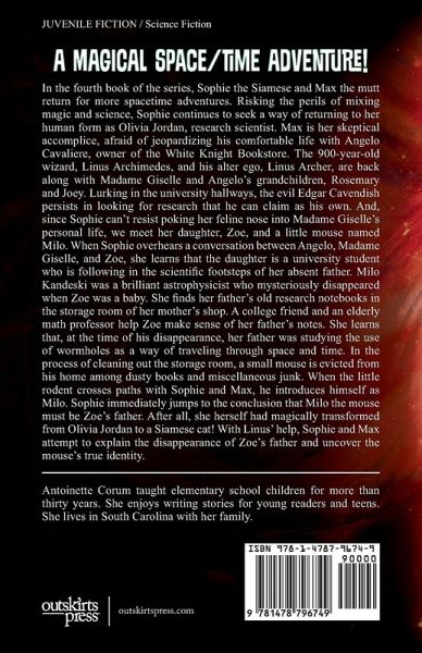 Through a shift in time and space, a beautiful young scientist is transformed into a Siamese cat. She is found by a kind old man who lives with a shaggy dog, Max. Deciding to keep the cat, Angelo names her Sophia after his favorite movie star, Sophia Loren. The cat is determined to return to her former life as a human, and Max is only too happy to help—to get rid of her! In their adventures across space and time, in both animal and human forms, they overcome difficulties and learn the true meaning of friendship. Antoinette Corum’s novel Sophie and Max Investigate a Wormhole is not just the funny and fanciful fourth book in the series—it strives to portray certain scientific concepts accurately. Middle-grade readers and teens will enjoy and learn from it, just as generations before have loved Charlotte’s Web, A Wrinkle in Time, and the Magic Tree House books.