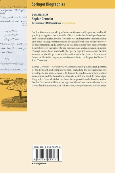 "The revised title and the book itself make the case that Sophie Germain was an extraordinary one-off, a remarkable woman who overcame incredibly unfair obstacles to achieve greatness, and paved the way for others. The documentary evidence discovered and synthesized here by Dora Musielak is far richer than I would have thought possible, and supports the title's claim that Sophie Germain was a 'Revolutionary Mathematician'." (Dora Musielak, MAA Reviews, November 7, 2020)