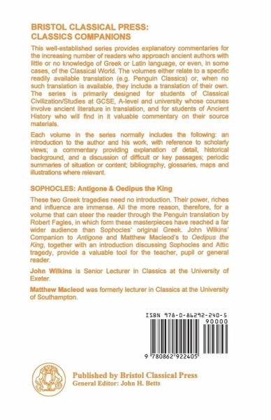 These two Greek tragedies need no introduction. Their power, riches and influence are immense. All the more reason, therefore, for a volume that can steer the reader through the Penguin translation by Robert Fagles, in which form these masterpieces have reached a far wider audience than Sophocles' original Greek. John Wilkins' Companion to the "Antigone" and Matthew Macleod's to "Oedipus the King", together with an introduction discussing Sophocles and Attic tragedy, provide a valuable tool for the teacher, pupil or general reader.