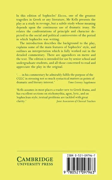 Mr Keels presents Sophocles' Electra as a study in revenge. The author relates the confrontations of principle and character depicted to the social and political controversies of the period in which Sophocles was writing. This books is intended for senior school, undergraduate students, and those concerned to read and appreciate the play in the original.