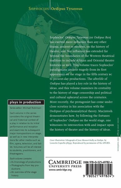 Sophocles' Oedipus Tyrannus (or Oedipus Rex) has exerted more influence than any other drama, ancient or modern, on the history of theatre, and this influence has extended far beyond the boundaries of the western theatrical tradition to include African and Oriental theatre histories as well. This volume traces Sophocles' paradigmatic ancient tragedy from its first appearance on the stage in the fifth century BC to present day productions. The afterlife of Oedipus has played a key role in the history of ideas, and this volume examines its centrality to the history of stage censorship and political and cultural upheaval across the centuries. More recently, the protagonist has come under close scrutiny in his association with the Oedipus of psychoanalytical theory. Macintosh demonstrates how, by following the fortunes of Sophocles' Oedipus on the world stage, one witnesses its intersection with and impact upon the history of theatre and the history of ideas.