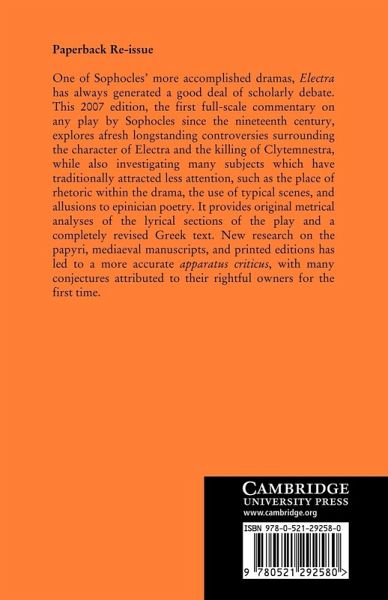 One of Sophocles' more accomplished dramas, the Electra has always generated a good deal of scholarly debate. This 2007 edition, the first full-scale commentary on any play of Sophocles since the nineteenth century, explores afresh long-standing controversies such as the moral status of the killing of Clytemnestra, while also investigating many subjects which have traditionally attracted less attention, such as the place of rhetoric within the drama, the use of typical scenes, and allusions to epinician poetry. It provides original metrical analyses of the lyrical sections of the play and a revised Greek text. Research on the papyri, mediaeval manuscripts and printed editions has led to a more accurate apparatus criticus than ever before, with many conjectures attributed to their rightful owners.