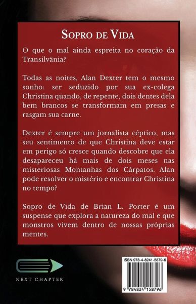 O que o mal ainda espreita no coração da Transilvânia? Todas as noites, Alan Dexter tem o mesmo sonho: ser seduzido por sua ex-colega Christina quando, de repente, dois dentes dela bem brancos se transformam em presas e rasgam sua carne. Dexter é sempre um jornalista céptico, mas seu sentimento de que Christina deve estar em perigo só cresce quando descobre que ela desapareceu há mais de dois meses nas misteriosas Montanhas dos Cárpatos. Alan pode resolver o mistério e encontrar Christina no tempo? Sopro de Vida de Brian L. Porter é um suspense que explora a natureza do mal e que monstros vivem dentro de nossas próprias mentes.