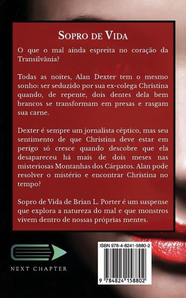 O que o mal ainda espreita no coração da Transilvânia? Todas as noites, Alan Dexter tem o mesmo sonho: ser seduzido por sua ex-colega Christina quando, de repente, dois dentes dela bem brancos se transformam em presas e rasgam sua carne. Dexter é sempre um jornalista céptico, mas seu sentimento de que Christina deve estar em perigo só cresce quando descobre que ela desapareceu há mais de dois meses nas misteriosas Montanhas dos Cárpatos. Alan pode resolver o mistério e encontrar Christina no tempo? Sopro de Vida de Brian L. Porter é um suspense que explora a natureza do mal e que monstros vivem dentro de nossas próprias mentes.