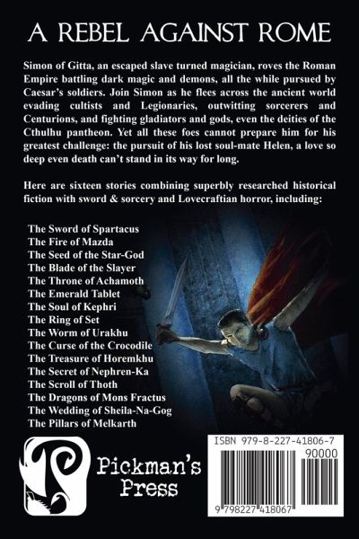 A REBEL AGAINST ROME Simon of Gitta, an escaped slave turned magician, roves the Roman Empire battling dark magic and demons, all the while pursued by Caesar's soldiers. Join Simon as he flees across the ancient world evading cultists and Legionaries, outwitting sorcerers and Centurions, and fighting gladiators and gods, even the deities of the Cthulhu Mythos. Yet all these foes cannot prepare him for his greatest challenge: the pursuit of his lost soul-mate Helen, a love so deep even death can't stand in its way for long. These stories were one of the inspirations for the Cthulhu Invictus campaign for the Call of Cthulhu role-playing game by Chaosium. Enjoy sixteen stories combining superbly researched historical fiction with sword & sorcery and Lovecraftian horror, including:The Sword of Spartacus The Fire of Mazda The Seed of the Star-God The Blade of the Slayer The Throne of Achamoth The Emerald Tablet The Soul of Kephri The Ring of Set The Worm of Urakhu The Curse of the Crocodile The Treasure of Horemkhu The Secret of Nephren-Ka The Scroll of Thoth The Dragons of Mons Fractus The Wedding of Sheila-Na-Gog The Pillars of Melkarth Vengence Quest (poetry)