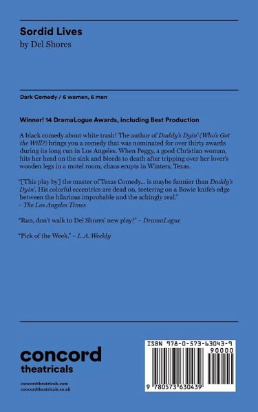 Comedy / 6m, 6f Winner! 14 DramaLogue awards including Best Production A black comedy about white trash! The author of Daddy's Dyin' (Who's Got the Will?) brings you a comedy that was nominated for over thirty awards during its long run in Los Angeles. When Peggy, a good Christian woman, hits her head on the sink and bleeds to death after tripping over her lover's wooden legs in a motel room, chaos erupts in Winters, Texas. "[This play by] the master of Texas Comedy ... is maybe funni