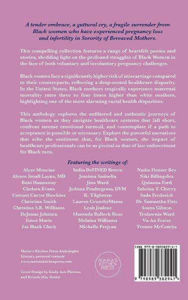 This compelling collection features a range of heartfelt poems and stories, shedding light on the profound struggles of Black women in the face of both voluntary and involuntary pregnancy challenges.