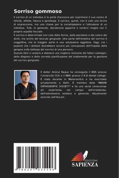 Il sorriso di un individuo è la porta d'accesso per esprimere il suo senso di felicità, affetto, fiducia e gentilezza. Il sorriso, quindi, non è solo una forma di espressione, ma una chiave per la socializzazione e l'attrazione di un individuo. Tutti, in generale, desiderano apparire e sentirsi meglio con il proprio aspetto facciale.Il sorriso è determinato non solo dalla forma, dalla posizione e dal colore dei denti, ma anche dal tessuto gengivale. Una parte dell'estetica del sorriso è soggettiva, ma la maggior parte è una valutazione oggettiva. Oggi, sia i pazienti che i dentisti dovrebbero essere più consapevoli dell'impatto della gengiva sulla bellezza del sorriso di una persona.Questo libro ci aiuterà a ottenere una migliore revisione dei fattori eziologici, della diagnosi e della corretta pianificazione del trattamento per la gestione del sorriso gengivale.