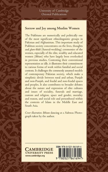 The Pukhtuns are numerically and politically one of the most significant ethno-linguistic groups in Pakistan and Afghanistan. This important study of Pukhtun society concentrates on the lives, thoughts and gham-khadi (funerals-weddings) ceremonies of the women, especially of the elite, wealthy and educated women (Bibiane) who have largely been overlooked in previous studies. Contesting their conventional representation as idle, it illustrates their commitment to various forms of work within familial and social contexts. It challenges the commonly assumed models of contemporary Pakistan society, which make a simplistic divide between rural and urban, Punjab and non-Punjab, and feudal and non-feudal spaces and peoples. It also contributes to broader debates about the nature and expression of elite cultures and issues of sociality, funerals and marriage, custom and religion, space and gender, morality and reason, and social role and personhood within the contexts of Islam in the Middle East and South Asia.