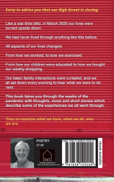 Like a war-time blitz, in March 2020 our lives were turned upside down. We had never lived through anything like this before. All aspects of our lives were changed. From how we worked, to how we exercised. From how our children were educated to how we bought our weekly shopping. Our basic family interactions were curtailed, and we all sat down every evening to hear what we were to do next. This book takes you through the weeks of the pandemic with thoughts, verse and short stories which describe some of the experiences we all went through. This poetry during the pandemic reminds us to never forget this time to examine what we have, what we do, who we are.