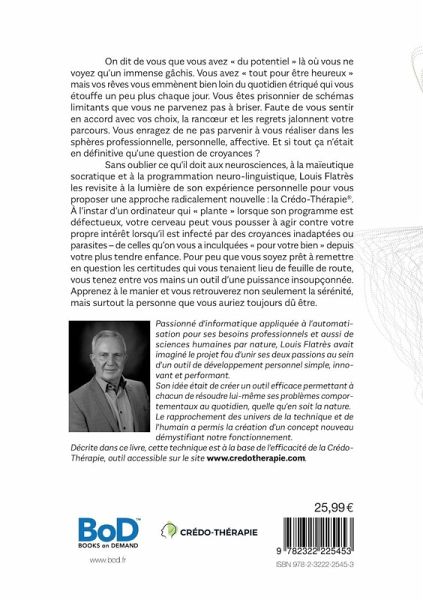 Sans oublier ce qu'il doit aux neurosciences, à la maïeutique socratique et à la programmation neuro-linguistique, Louis Flatrès les revisite à la lumière de son expérience personnelle pour vous proposer une approche radicalement nouvelle : la Crédo-Thérapie®.
