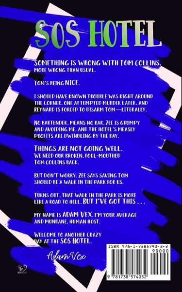 Something is wrong with Tom Collins. More wrong than usual. Tom's being nice. I should have known trouble was right around the corner. One attempted murder later, and Reynard is forced to disarm Tom (literally). No bartender, means no bar. Zee is grumpy and avoiding me, and the hotel's measly profits are dwindling by the day. Things are not going well. We need our broken, foul-mouthed Tom Collins back. But don't worry. Zee says saving Tom should be a walk in the park for us. Turns out, that walk in the park is more like a road to hell. But I've got this... My name is Adam Vex. I'm your average and mundane, human host. Welcome to another crazy day at the SOS Hotel.