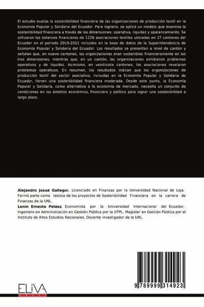 El estudio evalúa la sostenibilidad financiera de las organizaciones de producción textil en la Economía Popular y Solidaria del Ecuador. Para lograrlo, se aplicó un modelo que examina la sostenibilidad financiera a través de las dimensiones: operativa, liquidez y apalancamiento. Se utilizaron los balances financieros de 1226 asociaciones textiles ubicadas en 37 cantones del Ecuador en el periodo 2019-2021 incluidos en la base de datos de la Superintendencia de Economía Popular y Solidaria del Ecuador. Los resultados se presentan a nivel de cantón y señalan que, en nueve cantones, las organizaciones eran sostenibles financieramente en las tres dimensiones, mientras que, en un cantón, las organizaciones exhibieron problemas operativos y de liquidez. Asimismo, en veintisiete cantones, las asociaciones revelaron problemas operativos. En resumen, los resultados indican que las organizaciones de producción textil del sector asociativo, incluidas en la Economía Popular y Solidaria de Ecuador, tienen una sostenibilidad financiera moderada. Desde este punto, la Economía Popular y Solidaria, como alternativa a la economía de mercado, necesita un conjunto de condiciones en los ámbitos económico, financiero y político para lograr una sostenibilidad a largo plazo.