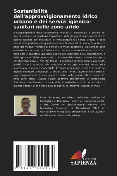 Il raggiungimento della sostenibilità finanziaria, ambientale e sociale dei servizi urbani è un problema importante. Visti gli ingenti investimenti che si stanno facendo per migliorare le infrastrutture e i servizi urbani, è della massima importanza che questi investimenti siano fatti in modo da portare il bene del maggior numero di persone in modo sostenibile. Nell'ambito delle infrastrutture urbane, la fornitura di acqua e il suo smaltimento dopo l'uso nelle città è diventato uno degli aspetti più importanti della pianificazione e della gestione. Nelle zone aride, che sono fisicamente povere d'acqua e costituiscono circa il 70% del Paese, il problema diventa ancora più acuto, poiché i costi associati alla creazione e alla gestione dei servizi WSS aumentano in modo esponenziale. È quindi necessario studiare a fondo gli aspetti finanziari, ambientali e sociali delle infrastrutture e dei servizi di approvvigionamento idrico e igienico-sanitari nelle grandi città e soprattutto nelle zone aride. Questo studio esamina criticamente la sostenibilità finanziaria, ambientale e sociale delle infrastrutture e dei servizi idrici e igienico-sanitari urbani nella città di Indore, nel Madhya Pradesh, in India.
