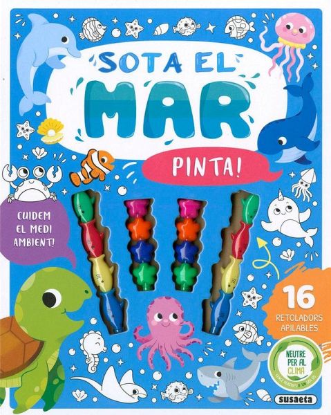 Juga i crea amb aquest llibre, que té 30 pàgines amb escenes diferents del mar perquè les pintis amb les pintures que l'acompanyen. Aquest llibre no conté plàstics d'un sol ús. Ajuda'ns a tenir cura del medi ambient!