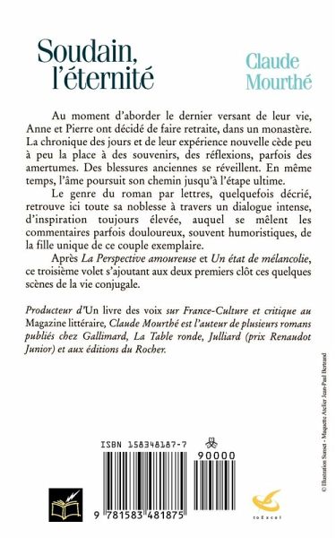Au moment d'aborder le dernier versant de leur vie, Anne et Pierre ont decide de faire retraite, dans un monastere. La chronique des jours et de leur experience nouvelle cede peu a peu la place a des souvenirs, des reflexions, parfois des amertumes. Des blessures anciennes se reveillent. En meme temps, l'ame poursuit son chemin jusqu'a l'etape ultime. Le genre du roman par lettres, quelquefois decrie, retrouve ici toute sa noblesse a travers un dialogue intense, d'inspiration toujours elevee, auquel se melent les commentaires parfois douloureux, souvent humoristiques, de la fille unique de ce couple exemplaire. Apres "La Perspective amoureuse" et "Un etat de melancolie," ce troisieme volet s'ajoutant aux deux premiers clot ces quelques scenes de la vie conjugale.