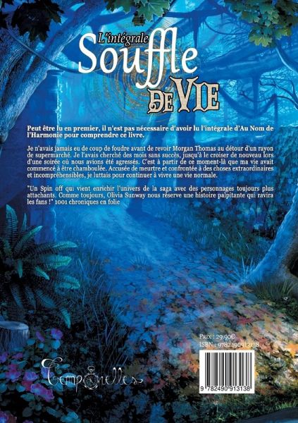 Alors que Melinda découvre ses pouvoirs, Vicky se bat pour sauver sa soeur et préserver sa vie amoureuse. Dans cette histoire parallèle à Au nom de l'Harmonie, les choix de Vicky pourraient tout bouleverser... La première fois que j'avais vu Morgan, mon coeur avait cessé de battre une seconde, avant de s'emballer frénétiquement... Je voulais à tout prix le revoir et c'est ce qui était arrivé quelques mois plus tard. Une agression m'avait fait découvrir des pouvoirs dont j'ignorais l'existence et qui semblaient provoquer des pertes de mémoire. Accusée de meurtre, je n'aurais jamais imaginé revoir Morgan dans de telles circonstances et je n'étais pas sûre de réussir à le convaincre de mon innocence. Mais un guerrier exécrable du nom d'Alex en avait décidé autrement. Si à présent je pensais être libérée de tout soupçon, la présence d'Alex dans ma vie était un vrai calvaire. Chaque cellule de mon corps le détestait. Plongez dans l'intégrale de Souffle de vie et explorez une nouvelle facette de l'univers magique et passionnant d'Olivia Sunway. *** SPICY ROMANCE & SLOW BURN ***