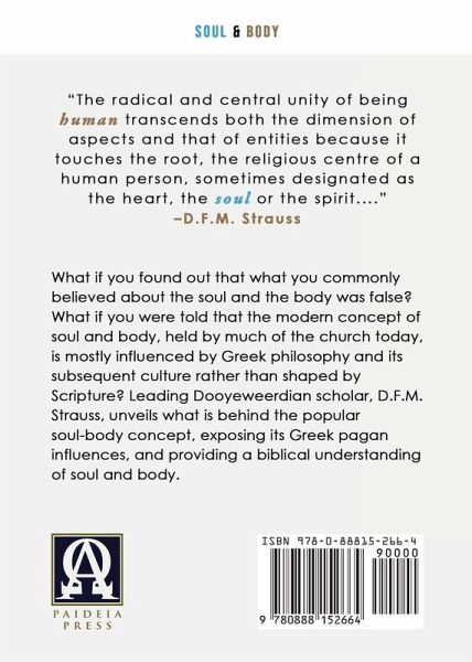 What if you found out that what you commonly believed about the soul and the body was false? What if you were told that the modern concept of soul and body, held by much of the church today, is mostly influenced by Greek philosophy and its subsequent culture rather than shaped by Scripture? Leading Dooyeweerdian scholar, D.F.M. Strauss, unveils what is behind the popular soul-body concept, exposing its Greek pagan influences, and providing a biblical understanding of soul and body.