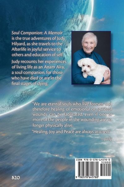 Judy Hilyard, RN, MN, is a retired ICU nurse with 47 years experience and two Masters degrees, all not needed for the Afterlife work she is now doing. At the end of Judy's career, she was learning how to be an Anam Cara, soul friend, assisting in a peaceful death for others. During that course, she was shocked into attention when she heard about the ancient practice of being an Anam Aira, caring for the soul, not generally practiced today. Judy determined to learn how to cross the Veil between physical life and death to assist souls in their transition, as needed. Soul Companion: A Memoir is the story of what Judy has experienced and learned as she cares for souls on both sides of the Veil. It is joyful work that is very healing for all concerned and takes away the fear of dying from those still alive.