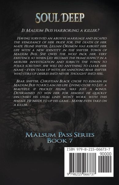 Is Malsum Pass harboring a killer? Having survived an abusive marriage and escaped the vengeance of her pride for the death of her mate, feline shifter, Lillian Oremun has rebuilt her life with a new identity in the shifter town of Malsum Pass. She owes the wolf pack her very existence, so when Lily becomes the prime suspect in a murder investigation and subjects the town to police scrutiny, she will do anything to clear her name – even team up with an annoying bear shifter who stirs up desires she'd never thought she'd feel. Bear shifter, Christian Black chose to remain in Malsum Pass to reclaim his life. Living close to Lily, a beautiful if prickly feline, was just a bonus. Determined to win her for himself, he quickly discovers his usual lines won't work with this female. He needs to up his game… Maybe even take on a killer.