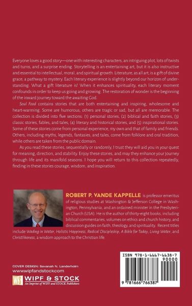 Everyone loves a good story--one with interesting characters, an intriguing plot, lots of twists and turns, and a surprise ending. Storytelling is an entertaining art, but it is also instructive and essential to intellectual, moral, and spiritual growth. Literature, as all art, is a gift of divine grace, a pathway to mystery. Each literary experience is slightly beyond our horizon of understanding. What a gift literature is! When it enhances spirituality, each literary moment confounds in order to keep us going and growing. The restoration of wonder is the beginning of the inward journey toward the awaiting God. Soul Food contains stories that are both entertaining and inspiring, wholesome and heart-warming. Some are humorous, others are tragic or sad, but all are memorable. The collection is divided into five sections: (1) personal stories, (2) biblical and faith stories, (3) classic stories, fables, and tales, (4) literary and historical stories, and (5) inspirational stories. Some of these stories come from personal experience, my own and that of family and friends. Others, including myths, legends, fantasies, and tales, come from folklore and oral tradition, while others are taken from the public domain. As you read these stories, sequentially or randomly, I trust they will aid you in your quest for meaning, direction, and stability. Enjoy these stories, and may they enhance your journey through life and its manifold seasons. I hope you will return to this collection repeatedly, finding in these stories courage, wisdom, and inspiration.