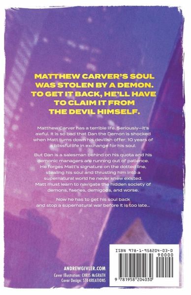 A demon stole Matthew Carver's soul. They're not supposed to do that.Matt has a terrible life. Seriously-it's awful. It is so bad that Dan the Demon is shocked when Matt turns down his infernal offer: 10 years of a blissful life in exchange for his soul. But Dan is a salesman behind on his quota and his demonic managers are running out of patience. He forges Matt's signature on the dotted line, stealing his soul and thrusting him into a supernatural world he never knew existed. Matt must learn to navigate the hidden society of demons, faeries, demigods, and worse. Matt has to get his soul back and stop a supernatural war before it is too late.... If you love urban fantasy, coming of age stories, and sarcastic narrators that don't know when to shut their mouth, you'll love Soul Fraud.