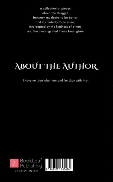 ""a collection of pieces about the struggle between my desire to be better and my inability to do more, intercepted by the kindness of others and the blessings that I have been given.""