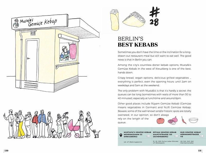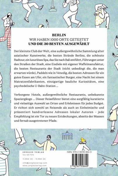 Der kleinste Club der Welt , eine außergewöhnliche Sammlung alter asiatischer Kunstwerke, die besten Strände Berlins, die schönste Radtour, ein luxuriöses Spa, das Sie nach Bali entführt, Führungen unter den Straßen der Stadt, eine Eisdiele mit eigener Waffelmanufaktur , die besten Restaurants der Stadt (nicht unbedingt die, die man erwarten würde), Paddeln wie in Venedig, die besten Adressen für ein gutes Essen am Ufer, ein fantastischer Burger, eine Nacht bei einem Matratzenfabrikanten, einzigartige bauliche Kuriositäten, eine psychedelische U-Bahn-Station ...