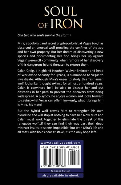 Can two wild souls survive the storm? Mira, a zoologist and secret cryptozoologist at Vegas Zoo, has observed an unusual wolf prowling the confines of the zoo and her own property. But her dream of discovering a new species and documenting her find brings her up against Vegas' werewolf community when rumors of her discovery of this dangerous hybrid threaten to expose them. Calan Creig, a Highland Heathen Wulver Enforcer and head of Worldwide Security for Lycans, is summoned to Vegas to investigate. Although Mira's eager to study this Tasmanian wolf lookalike, thought extinct for almost a hundred years, Calan is convinced he'll be able to distract her and put obstacles in her path to prevent the discovery from being widespread. A playboy, he enjoys women and looks forward to seeing what Vegas can offer him-only, what it brings him is Mira, his mate! But the hybrid wolf craves Mira to strengthen his own bloodline and will stop at nothing to have her. Now Mira and Calan must work together to eliminate the threat of this renegade wolf...if they can find their way past their deep mistrust issues. It seems impossible, but with Mira's life and all that Calan holds dear at stake, it's the only hope left.
