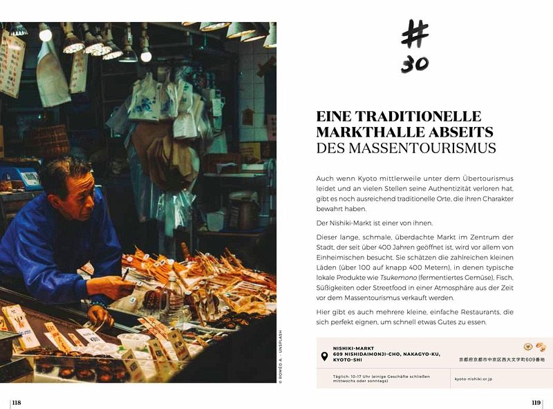 SOUL OF KYOTO- 30 ERLEBNISSE Wir haben 1000 Orte getestet und die 30 besten ausgewählt. Gerade eingekaufte Köstlichkeiten direkt hinter dem Fischmarkt grillen, eine Teezeremonie in einem Privathaus erleben, im Garten eines einzigartigen Tempels spazieren gehen, den Künstler treffen, der die seit 50 Jahren verschwundenen Handfächer aus Kyoto zu neuem Leben erweckt, eine verborgene Bar in einem Tempel entdecken, das beste Eiersandwich der Stadt probieren, eine traditionelle Markthalle abseits des Massentourismus besuchen, Aguri Mochi verkosten , die der Grund für eine über tausendjährige Rivalität sind, oder zusehen, wie sich ein Holzlager bei Einbruch der Nacht in eine Izakaya verwandelt ... "Soul of" steht für die neue Kunst des Reisens mit geheimen Adressen und unvergesslichen Erlebnissen . Die ausgewählten Orte bieten das Versprechen auf einen außergewöhnlichen Moment - für jeden Geschmack und jedes Budget . SOUL OF - Die Kunst des Reisens anders erleben * Preisgekrönte Reiseführer , verfasst von lokalen Expert:innen - erleben Sie die Stadt wie ein:e Einheimische:r * Insidertipps, die unerwartete 2und inspirierende Erlebnisse abseits der Touristenströme garantieren * Besondere Hotels, geheime Bars , authentische Restaurants und einzigartige Shops, unbekannte Spaziergänge, die die Seele der Stadt ausmachen * Ein Reiseführer der sich wie ein Lifestyle Magazin anfühlt