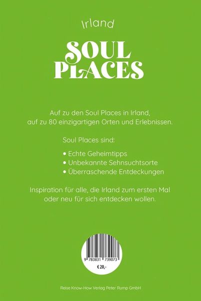 Zwischen windumtosten Klippen, malerischen Buchten und Klosteranlagen voller Geschichte hat Autorin Sandra Böttcher für ihren Inspirationsreiseführer 80 Soul Places in Irland aufgespürt, die die Seele des Landes in sich tragen und das Zeug zu neuen Lieblings- und Sehnsuchtsorten haben. Jeder dieser Soul Places lädt dazu ein, Irland mit allen Sinnen zu spüren und sich mitreißen zu lassen von der Vielfalt, Kultur und wilden Natur Irlands.