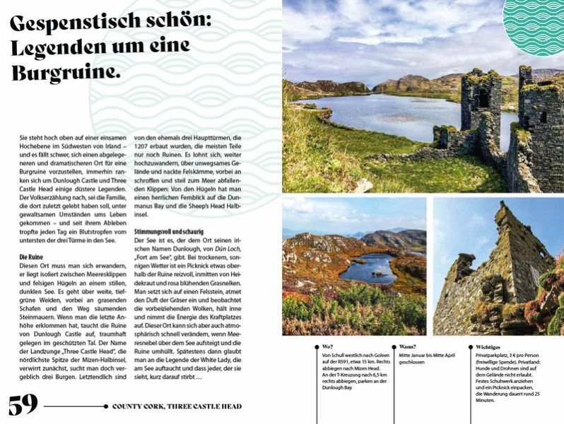 Von romantischer Street Art im Pub-Viertel von Dublin über die heilige Quelle der Jungfrau Maria bis zum Afternoon Tea im Westflügel des herrschaftlichen Bantry House: All diese Orte und Erlebnisse sind Ausdruck der Seele Irlands, eines Landes, das reich ist an kulturellem Erbe und rauer Landschaft, uralten Traditionen einerseits und pulsierenden Städten mit einer lebendigen Kulturszene andererseits. Für Reisende, die auf der Suche nach Geheimtipps sind, öffnet sich eine Welt voller versteckter Orte, die entdeckt werden wollen.