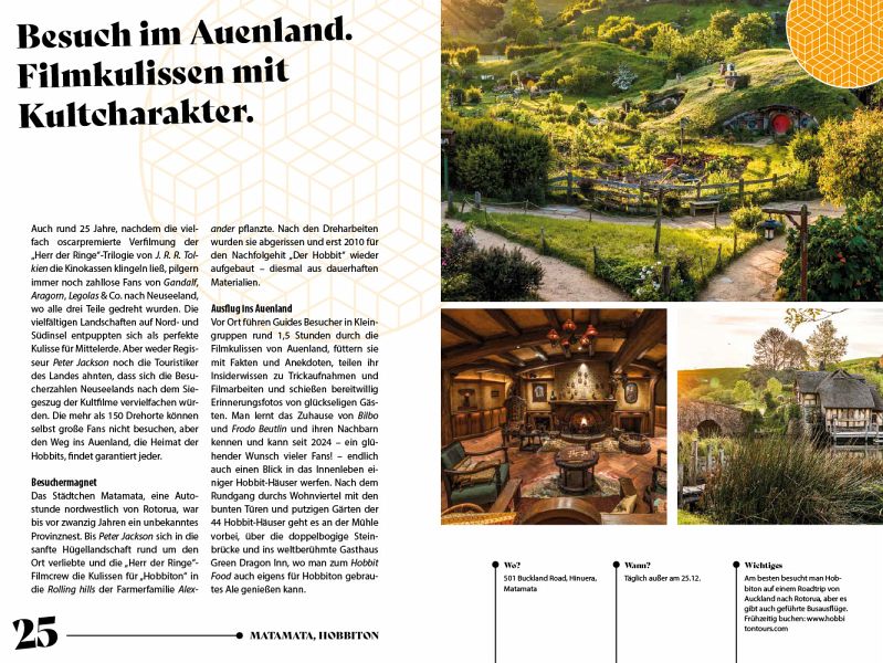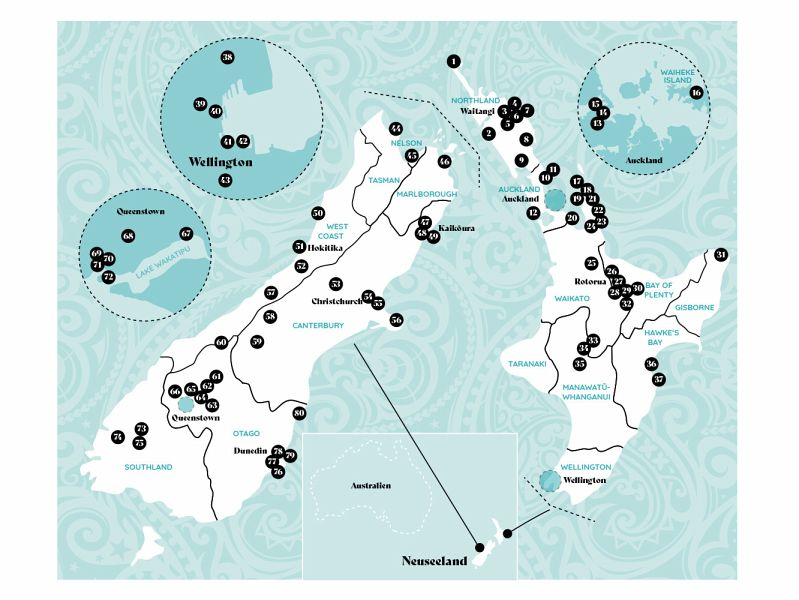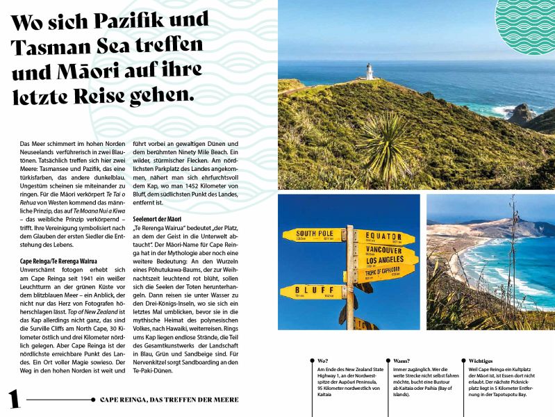 Cape Reinga, wo die Seelen der Maori auf ihre letzte Reise gehen, ebenso wie die Feuerberge, Geysire und blubbernden Schlammquellen rund um Rotorua, die unter anderem Kulisse für den Kultfilm "Herr der Ringe" waren: All diese Orte haben das Potenzial, zu neuen Lieblings- und Sehnsuchtsorten und zu den schönsten Reiseerinnerungen zu werden.