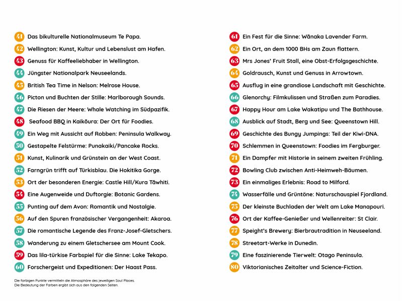 Wilde Küstenstriche, türkisfarbene Bergseen, spirituelle Plätze der Maori, mystische Regenwälder, steil aufragende Vulkane und eisige Berggipfel: Neuseeland bietet große Vielfalt auf kleinem Raum. Seine Landschaften faszinieren genauso wie die quirligen Städte mit Street-Art-Galerien und stylischen Cafés oder seine Dörfer mit Wild-West-Charme - Orte, die von der Geschichte des Landes erzählen und die Seele Neuseelands in sich tragen. Für Reisende, die auf der Suche nach Geheimtipps sind, öffnet sich eine Welt voller versteckter Orte, die entdeckt werden wollen. Diese besonderen Orte hat Autorin Elke Homburg für ihren Inspirationsreiseführer aufgespürt.