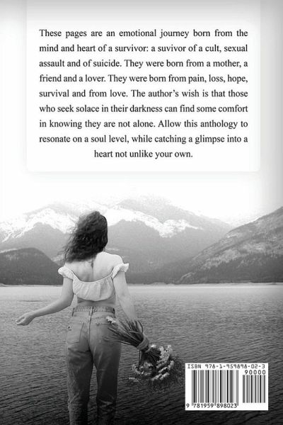 These pages are an emotional journey born from the mind and heart of a survivor: a suvivor of a cult, sexual assault and of suicide. They were born from a mother, a friend and a lover. They were born from pain, loss, hope, survival and from love. The author's wish is that those who seek solace in their darkness can find some comfort in knowing they are not alone. Allow this anthology to resonate on a soul level, while catching a glimpse into a heart not unlike your own.