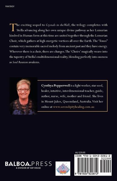 The exciting sequel to Crystals in the Wall, the trilogy completes with Stella advancing along her own unique divine pathway as her Lemurian kindred in Human form at this time are united together through the Lemurian Choir, which gathers at high energetic vortices all over the Earth. The 'Tones" contain very memorable sacred melody from ancient past and they have energy. Wherever there is a choir, there are changes. The 'Choirs' magically weave into the tapestry of Stella's multidimensional reality, blending perfectly into oneness as Soul Reunion awakens.