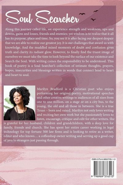 Along this journey called life, we experience strength and weakness, ups and downs, gains and losses, friends and enemies; yet wisdom is to realize that it all has its purpose, place and time. So, you see it is after facing our deepest despair that we are able to realize our greatest joy. It is our challenges that award us with knowledge. And the muddled mixed moments of doubt and confusion gives truth and clarity its radiant glow. However, to finally find the truest image of ourselves we must take the time to look beyond the surface of our existence and Search the Soul. With writing comes the responsibility to be understood. This book of poetry and verse is a collection of intimate thoughts, prayers, hopes, insecurities, and blessings humbly written from the heart. Thank you for reading.