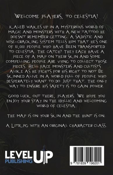 Welcome players, to Celestia! Kaleb wakes up in a mysterious world of magic and monsters with a new tattoo he doesn't remember getting. A sadistic and wise-cracking system tells him that he's one of 10,000 people who have been transported to Celestia. The catch? They each have a piece of a map on their skin and some compelling people are vying to collect those pieces. He'll face monsters and cultists alike as he fights for his right to not be skinned alive in a world full of people who desperately want to do just that. The only way to ensure his safety is to gain power. Good luck out there, players. We hope you enjoy your stay in the idyllic and welcoming world of Celestia. The map is on your skin and the hunt is on. A LitRPG with an original character class.