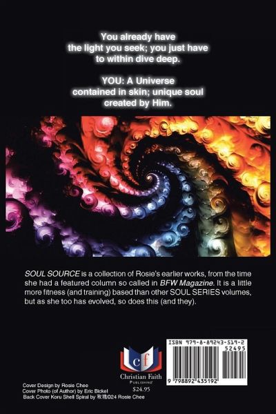 You already have the light you seek; you just have to within dive deep. YOU: A Universe contained in skin; unique soul created by Him. SOUL SOURCE is a collection of Rosie's earlier works, from the time she had a featured column so called in BFW Magazine. It is a little more fitness (and training) based than other SOUL SERIES volumes, but as she too has evolved, so does this (and they).