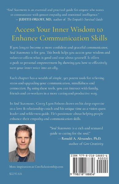 If you long to become a more confident and graceful communicator, Soul Statements is for you. This book reveals a path to personal empowerment by teaching you how to effectively turn your inner voice into a constructive ally. Soul Statements plugs you into your own unique and essential voice. Each chapter has a wealth of simple, yet potent tools for relieving stress and upgrading communication, mindfulness and connection in order to interact with family, friends and co-workers in a more caring and productive way. This also includes many practical ways to improve self-care as a busy person. This book contains engaging stories from the author's wilderness experiences and real-life examples of persons who've used Soul Statements to increase personal fulfillment ¿Important: In order to ensure that you don't get a counterfeit copy when purchasing on Amazon (wrong formatting, missing pages, no credit to the author...), make certain that the seller is listed as Amazon or other trusted merchant. Bookshop.org is another way to order online while supporting a bookstore of your choosing.