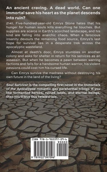 An ancient craving. A dead world. Can one near-immortal save his heart as the planet descends into ruin? 2141. Five-hundred-year-old Emrys Stone hates that his hunger for human souls kills everything he touches. But supplies are scarce in Earth's scorched landscape, and his kind are falling into anarchic chaos. When a ferocious insanity devours the remaining food source, Emrys's last hope for survival lies in a desperate trek across the apocalyptic wasteland. Almost at death's door, Emrys stumbles on another colony and asks for shelter in return for his services as an assassin. But when he becomes a pawn between warring factions and falls for a handsome human warrior, his violent passions could cost him his cursed life. Can Emrys survive the madness without destroying his own future in the land of the living? Soul Survivor is the compelling first novel in the Immortals of the Apocalypse romantic gay paranormal suspense trilogy. If you like tormented heroes, ruined lands, and eternal beings, then you'll love Daniel de Lorne's twisted tale.