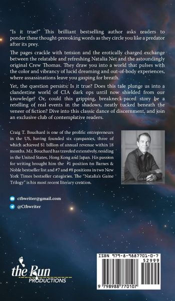 A deep soul-tie attraction is the last thing Crew and Natalia expected, but the two fall for each other in unexpected ways during their wild ride. Who wouldn't develop feelings for Natalia? Her tough, intelligent, ambitious persona is a pure delight. Readers will be in splendid awe at every decision she makes and every direction she takes. The two brilliant spies find a way to astral project and teleport together, breaking the barriers of time and space. Fun? Not at all. It's dangerous, and it's not that simple. An antagonist, the beautiful and cunning Transylvanian Alina Balan, appears and challenges their soul connection. But, as we all know, jealousy can sometimes be as potent as love. Crew and Natalia don't have simple character arcs where they fall in love and live forever after as partners. There's no time for that. Instead, the duo uses Natalia's dreams to project into the future, trying to prevent a global catastrophe. With this motive, Bouchard has woven quantum physics beautifully into the story. But we must ask ourselves - is all this fiction, or is it true?