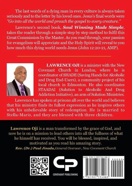 The last words of a dying man in every culture is always taken seriously and to the letter by his loved ones. Jesus's final words were "Go into all the world and preach the gospel to every creature." Lawrence's second book, Soul Winning Made Simple, takes the reader through a simple step by step method to fulfil this Great Commission by the Master. As you read through, your passion for evangelism will appreciate and the Holy Spirit will reveal to you how much this dying world needs Jesus (John 12:20-21, AMP).